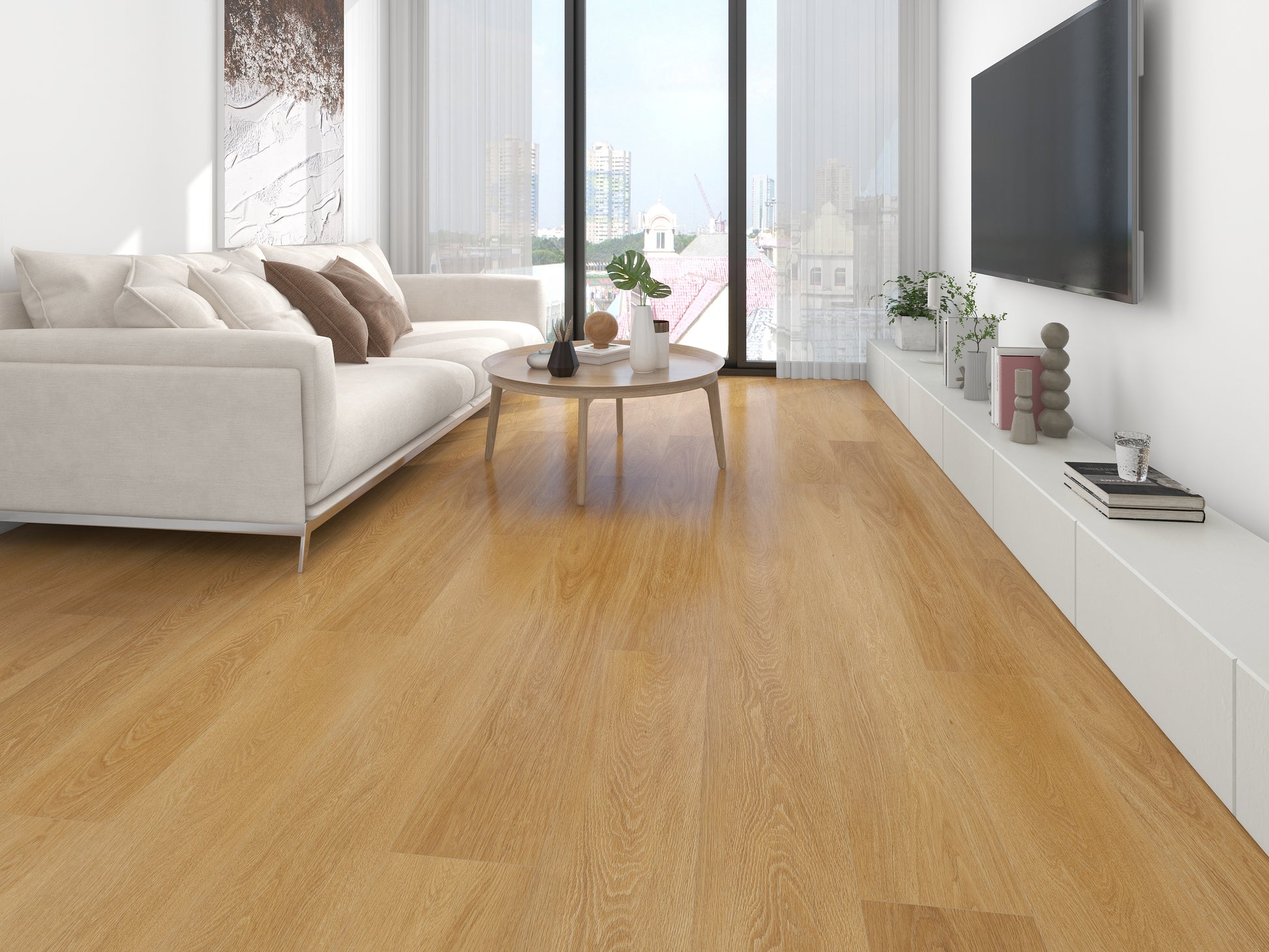8mm Hybrid Flooring—Engineered with a multi-layer construction, it combines the authentic wood-look visuals of vinyl with the rigid core stability of laminate, delivering exceptional resistance to scratches, stains, and moisture. At 8mm thick, this flooring offers a comfortable underfoot feel while ensuring easy installation with its click-lock system. Suitable for high-traffic areas like kitchens, bathrooms, and living rooms, it requires minimal maintenance—just sweep or damp mop to keep it looking pristine for years.