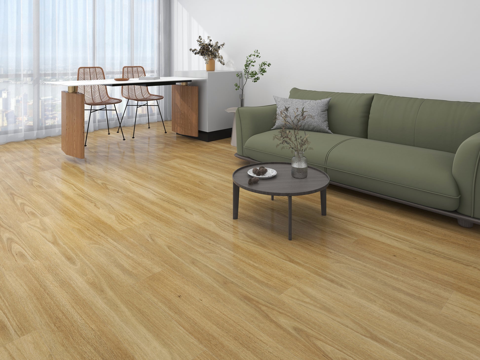 8mm Hybrid Flooring—Engineered with a multi-layer construction, it combines the authentic wood-look visuals of vinyl with the rigid core stability of laminate, delivering exceptional resistance to scratches, stains, and moisture. At 8mm thick, this flooring offers a comfortable underfoot feel while ensuring easy installation with its click-lock system. Suitable for high-traffic areas like kitchens, bathrooms, and living rooms, it requires minimal maintenance—just sweep or damp mop to keep it looking pristine for years.
